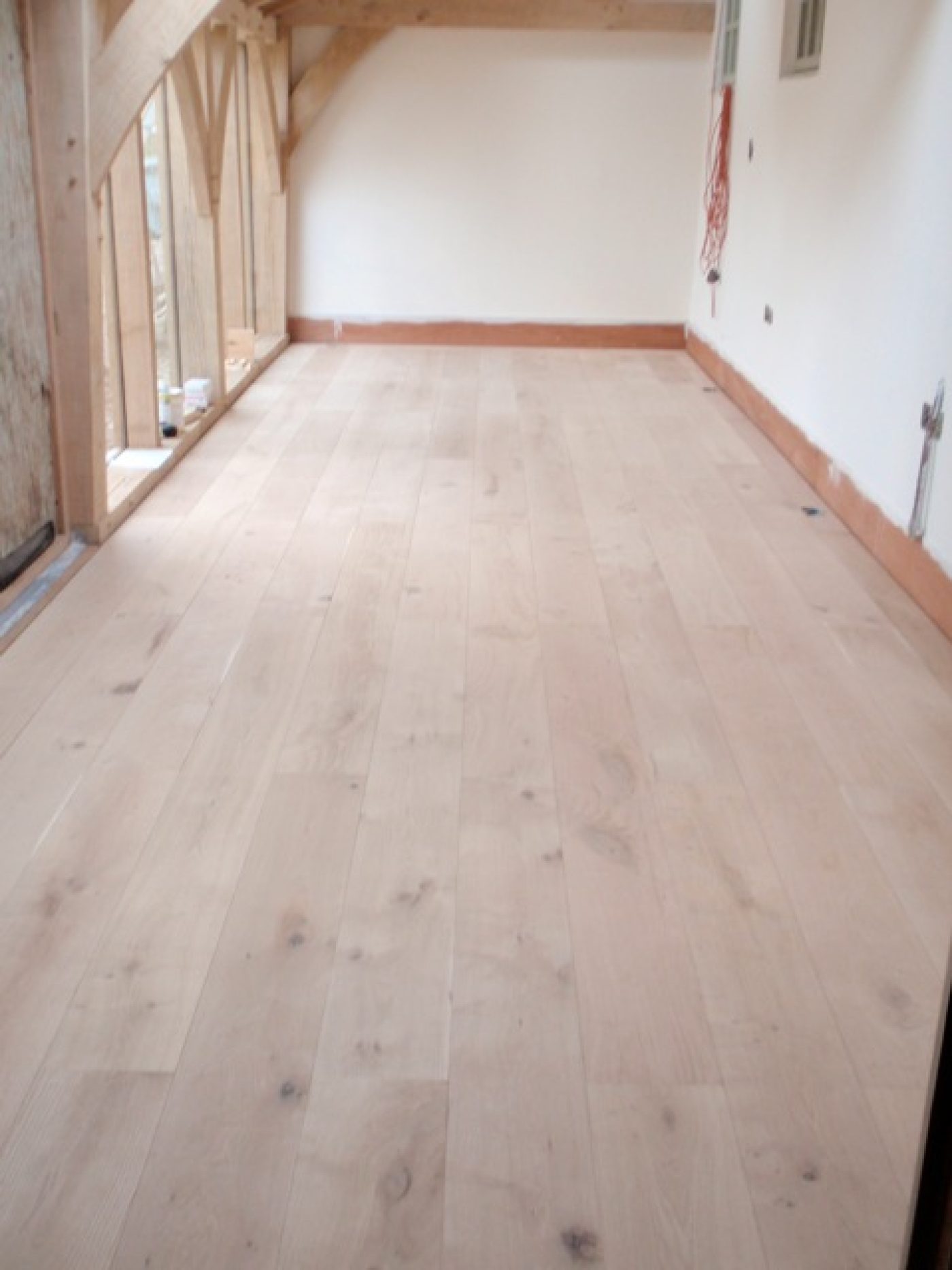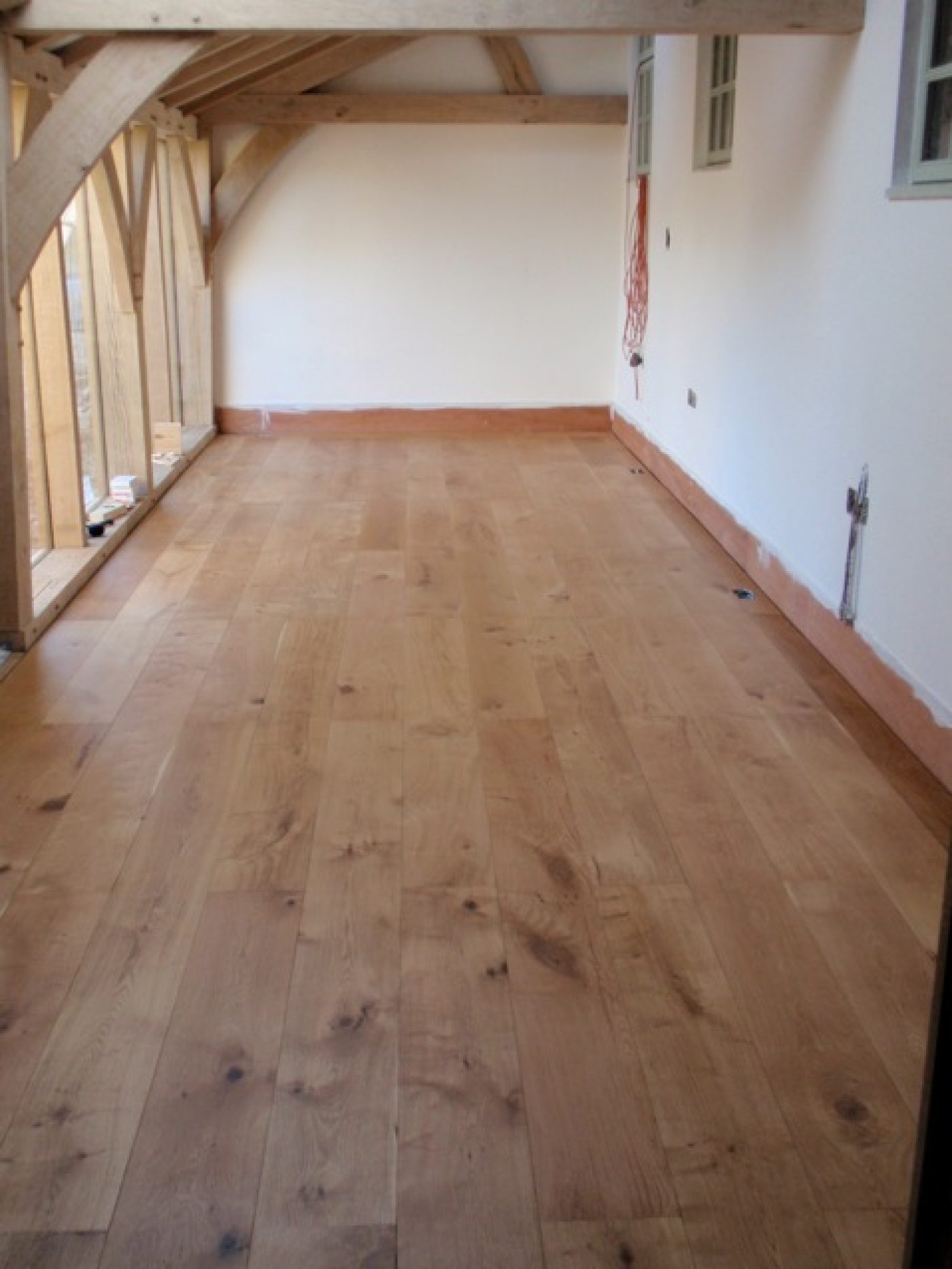 As a ‘floating’ floor it is not rigidly fixed and has no battens or bearers, and despite these being your widest 220 mm boards there have no problems whatsoever. I did not even glue the T&G joints relying solely on the Elastilon which has been marvellous. A friend who went the ‘traditional’ route with solid boards on battens has seen a lot of movement whereas our joints are as tight as the day they were laid. This new-build green oak room has experienced great variations in temperature and humidity so it is not even a pampered floor!!
