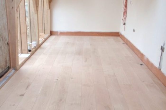 The engineered oak boards were laid directly onto Elastilon which sat on 70 mm thick Xtratherm foam insulation board that sat on a vapour barrier sheet on top of the concrete slab at our Leicestershire home.