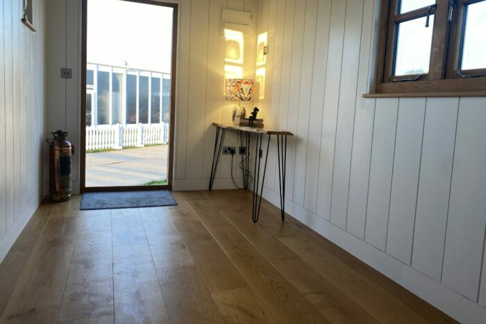 Wedmore Shepherds Huts chose the Supreme 220mm for a number of reasons, the most obvious being the natural beauty and elegance of the European Oak boards and how well it suits these characteristics units. The boards are also made up of a 6mm solid oak wear layer and hardwood multi-laminate plywood core – resulting in a floor that will last just as long as a solid oak floor, yet provide far more reliability in terms of stability and movement.