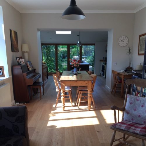 First and foremost, engineered hardwood floors offer the supreme blend of practicality and durability of any floor surface.  While solid hardwood flooring has proved itself as being a fantastic flooring choice for many years, there are a number of situations where it is not the best choice, or even a viable choice. Wood is a natural material and, as such, is prone to expanding and contracting depending on temperature and humidity. Engineered oak flooring overcomes this challenge because it is made from a series of laminated layers of real hardwood, topped by a beautiful wear-layer of solid oak. By layering the grain in opposite directions engineered flooring is less prone to expansion/contraction and can therefore be safely installed in rooms such as kitchens and conservatories where possible temperature fluctuations could occur and be problematic for solid wood. Additionally, engineered oak flooring may be laid on top of underfloor heating, so in any room you can enjoy the most efficient form of home heating and that luxurious warmth underfoot that goes with a heated floor.
